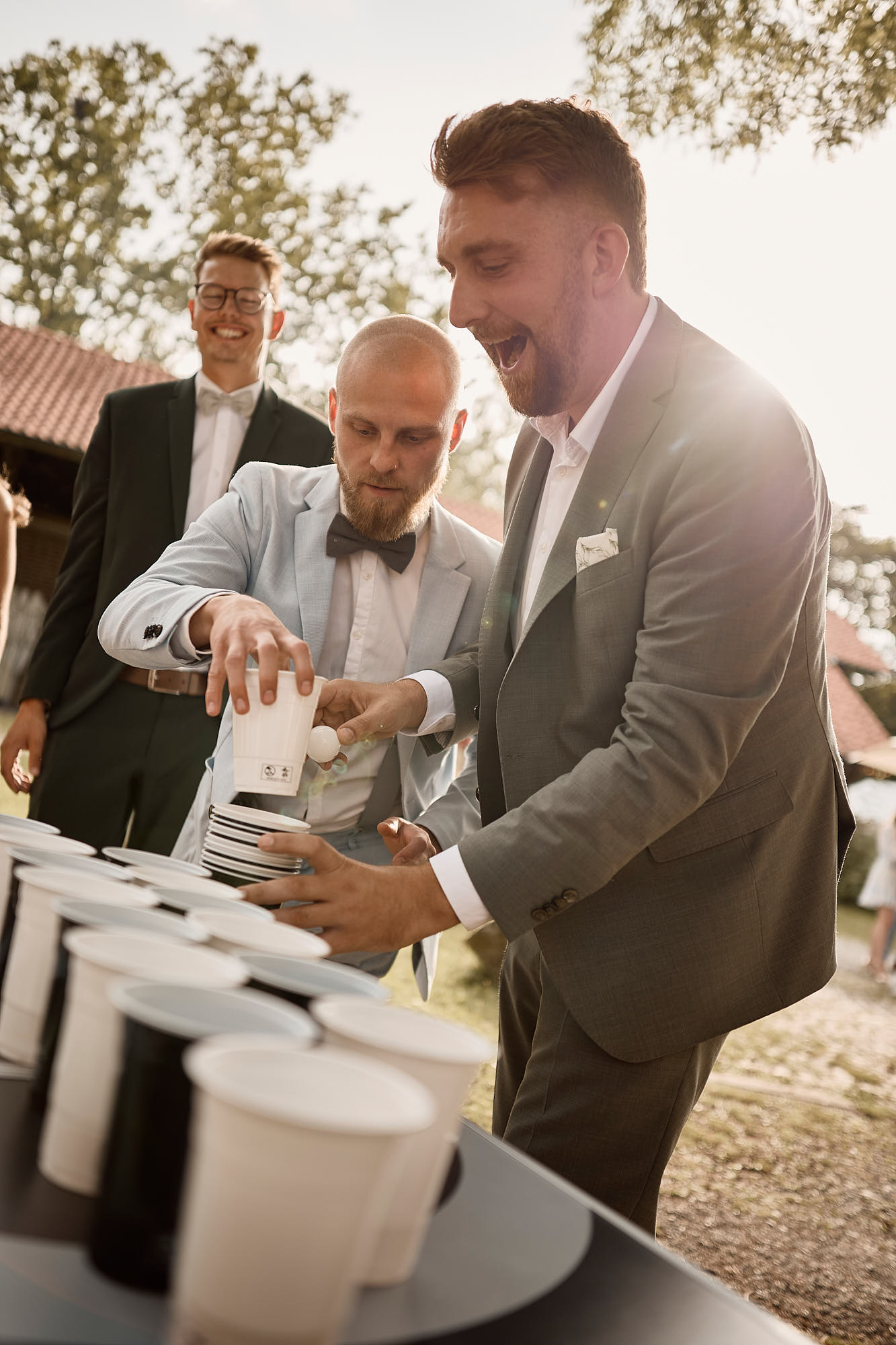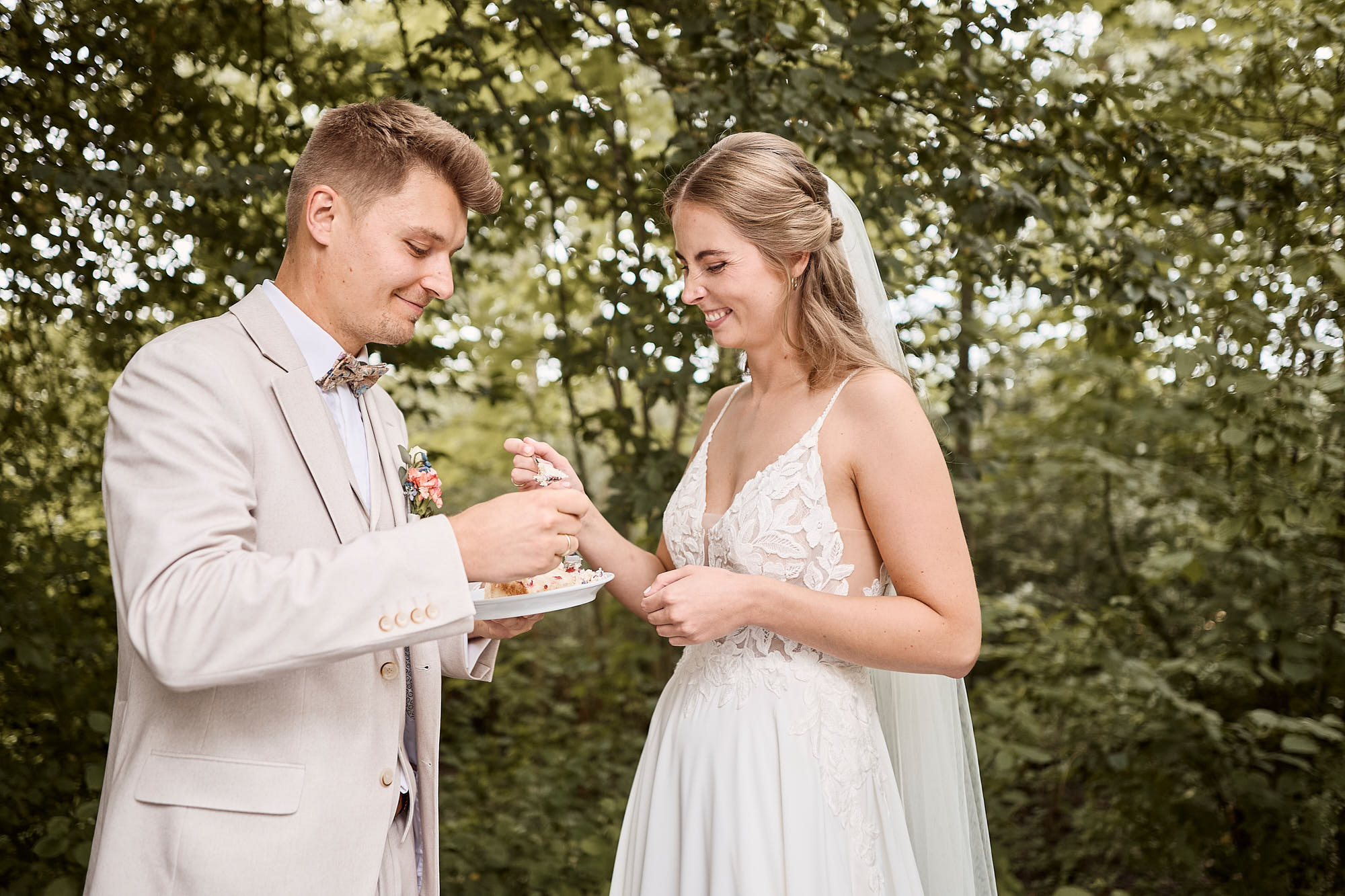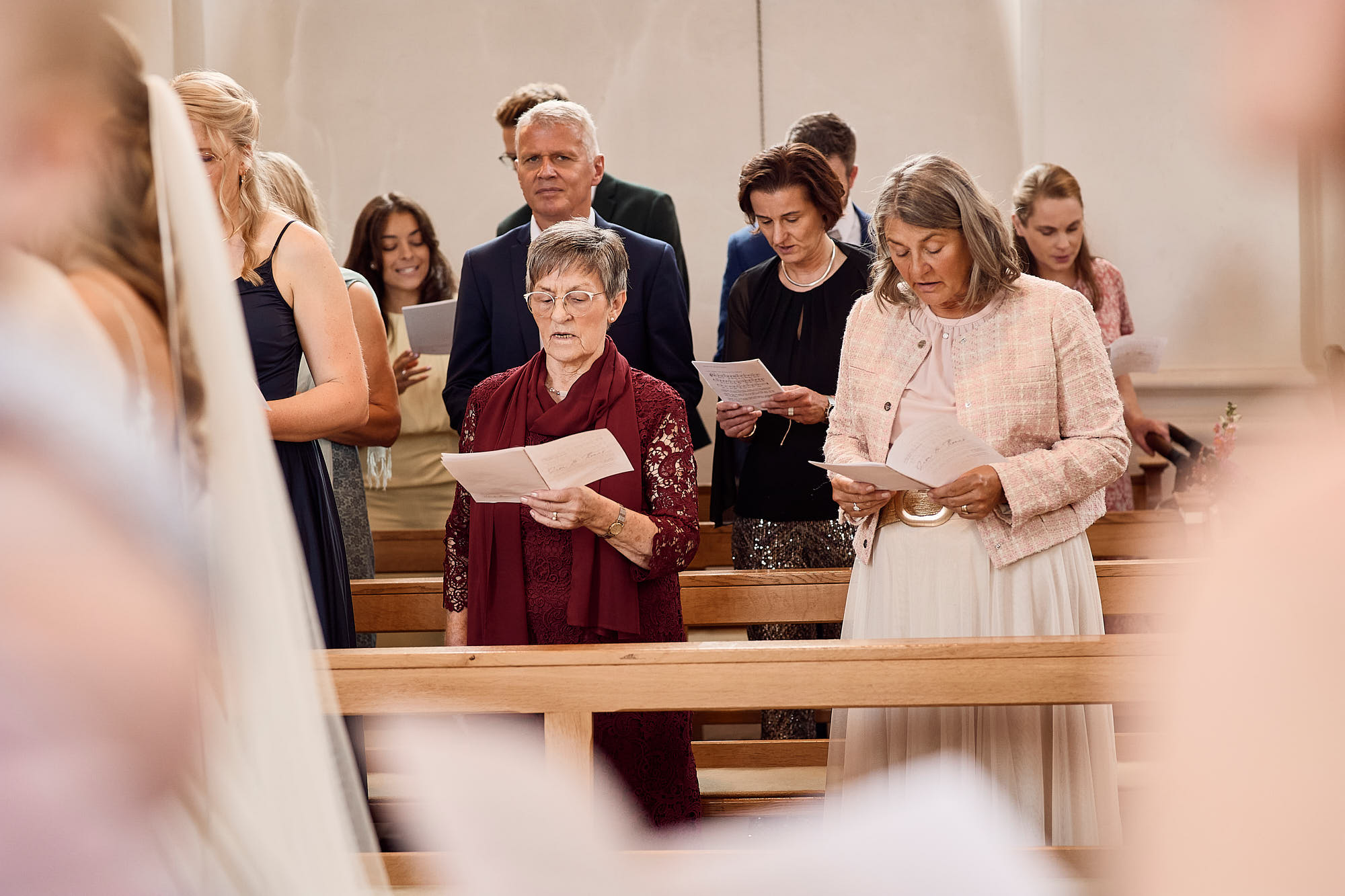 Dort haben wir uns etwa 15-20 Minuten Zeit für natürliche Brautpaarbilder genommen, ganz entspannt und ohne großen Aufwand. Anschließend entstanden noch die Gruppenfotos, bevor ich die Hochzeit bis zum Essen weiter dokumentiert habe. Eine rundum stimmige Hochzeit mit vielen echten Erinnerungen.