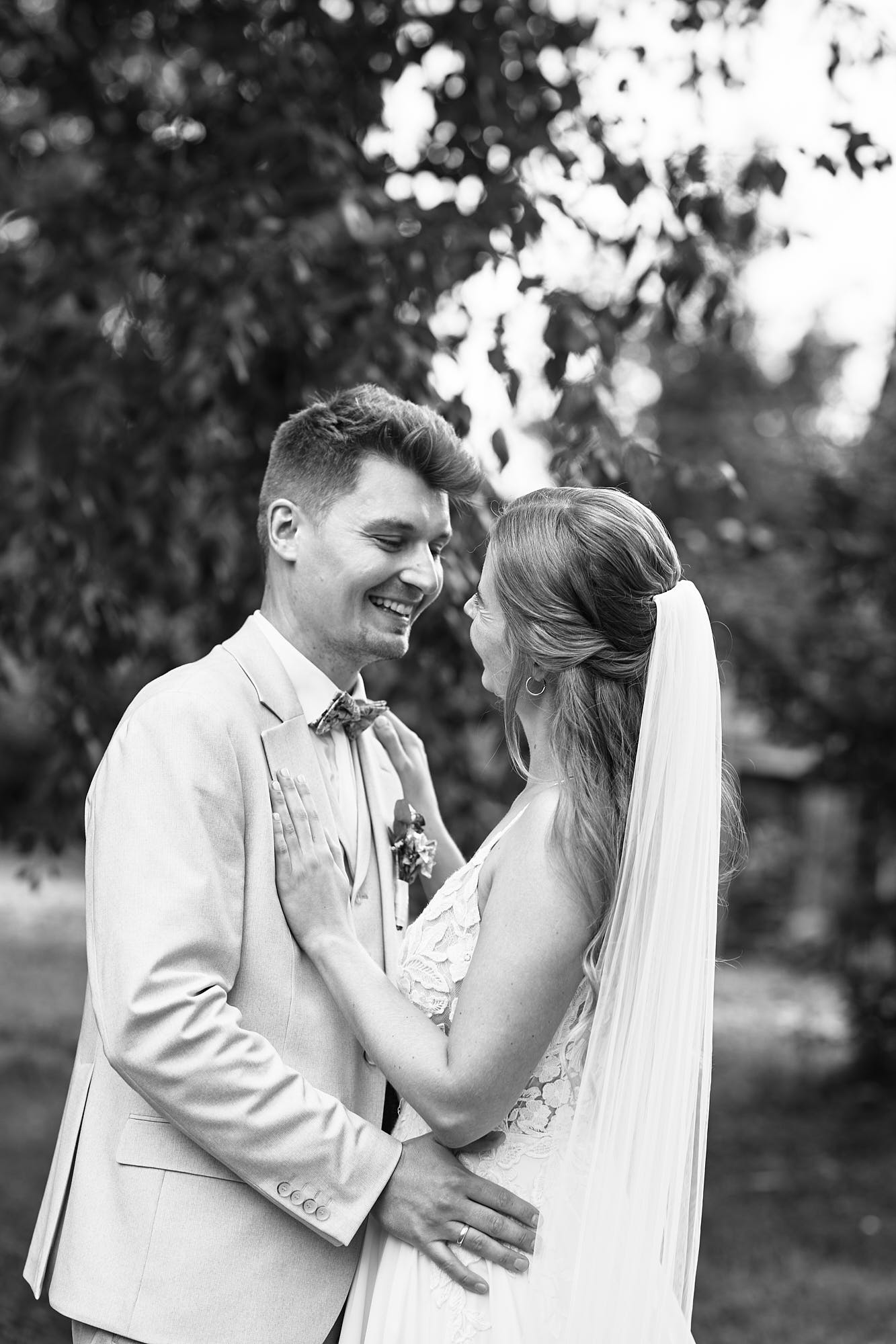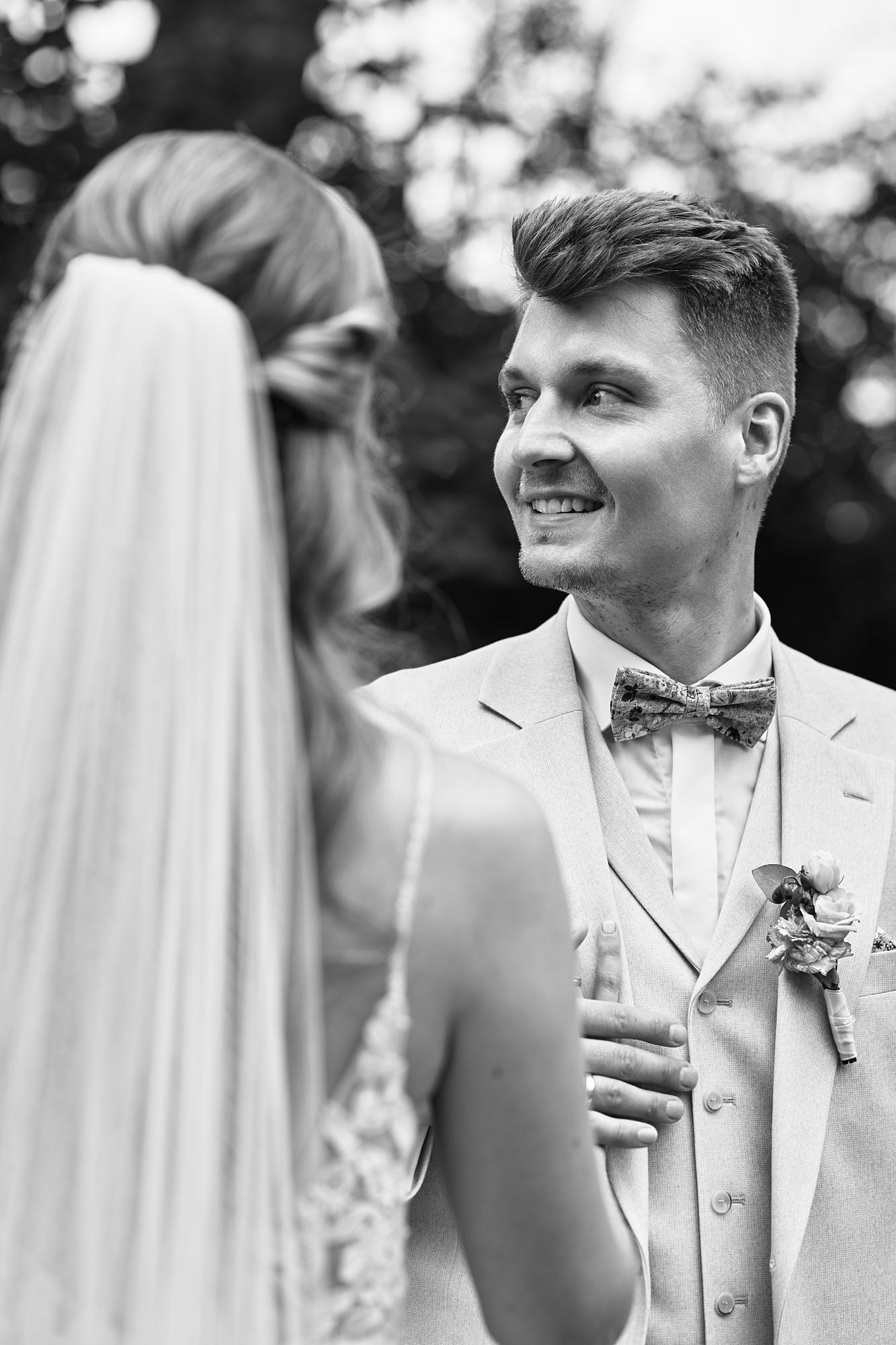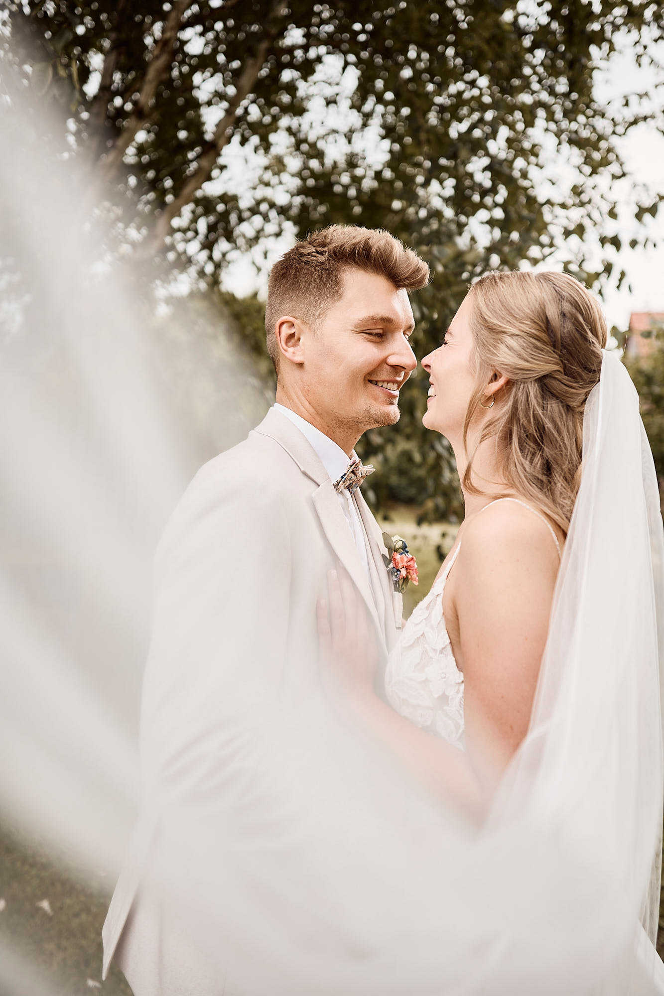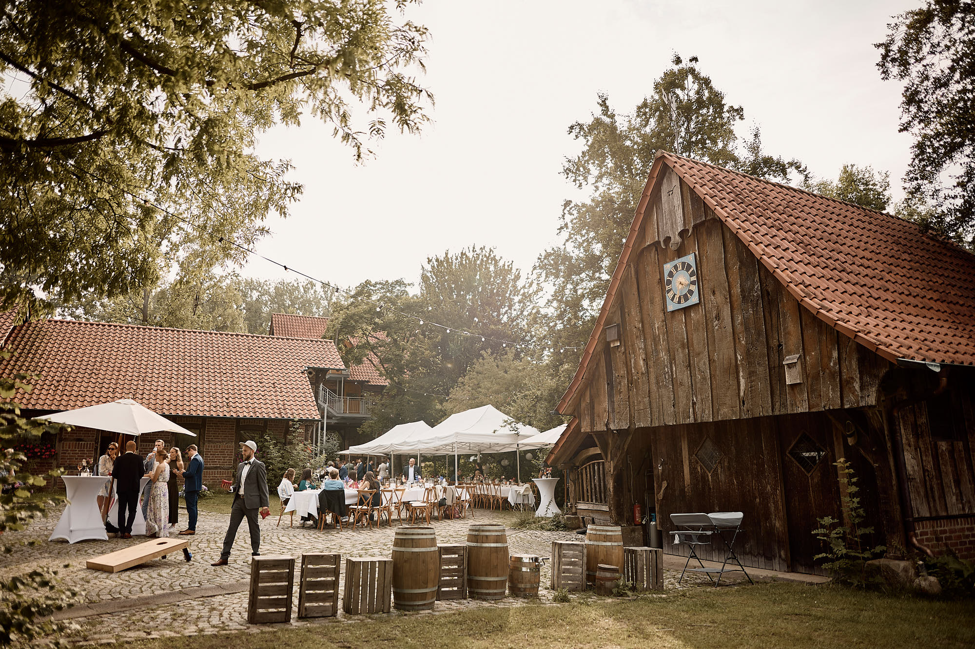 Dort haben wir uns etwa 15-20 Minuten Zeit für natürliche Brautpaarbilder genommen, ganz entspannt und ohne großen Aufwand. Anschließend entstanden noch die Gruppenfotos, bevor ich die Hochzeit bis zum Essen weiter dokumentiert habe. Eine rundum stimmige Hochzeit mit vielen echten Erinnerungen.