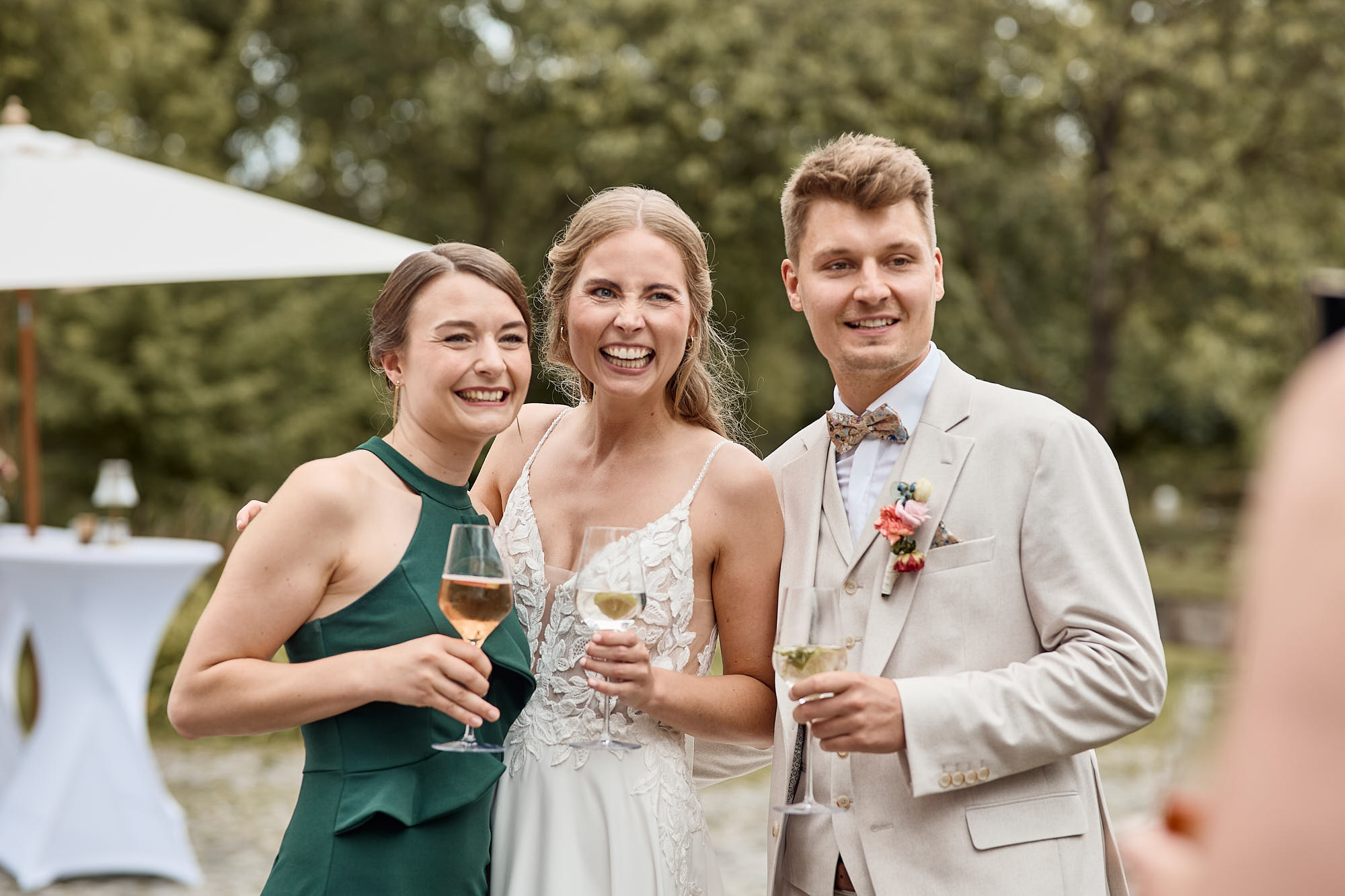 Bei dieser Hochzeit durfte ich besonders viele Emotionen des Brautpaares, der Familie und der Gäste begleiten: berührte Blicke, Freudentränen und ehrliches Lachen. Nach der kirchlichen Trauung ging es für den Sektempfang zum Torhaus Münster, eine wunderschöne Location – vor allem bei gutem Wetter.